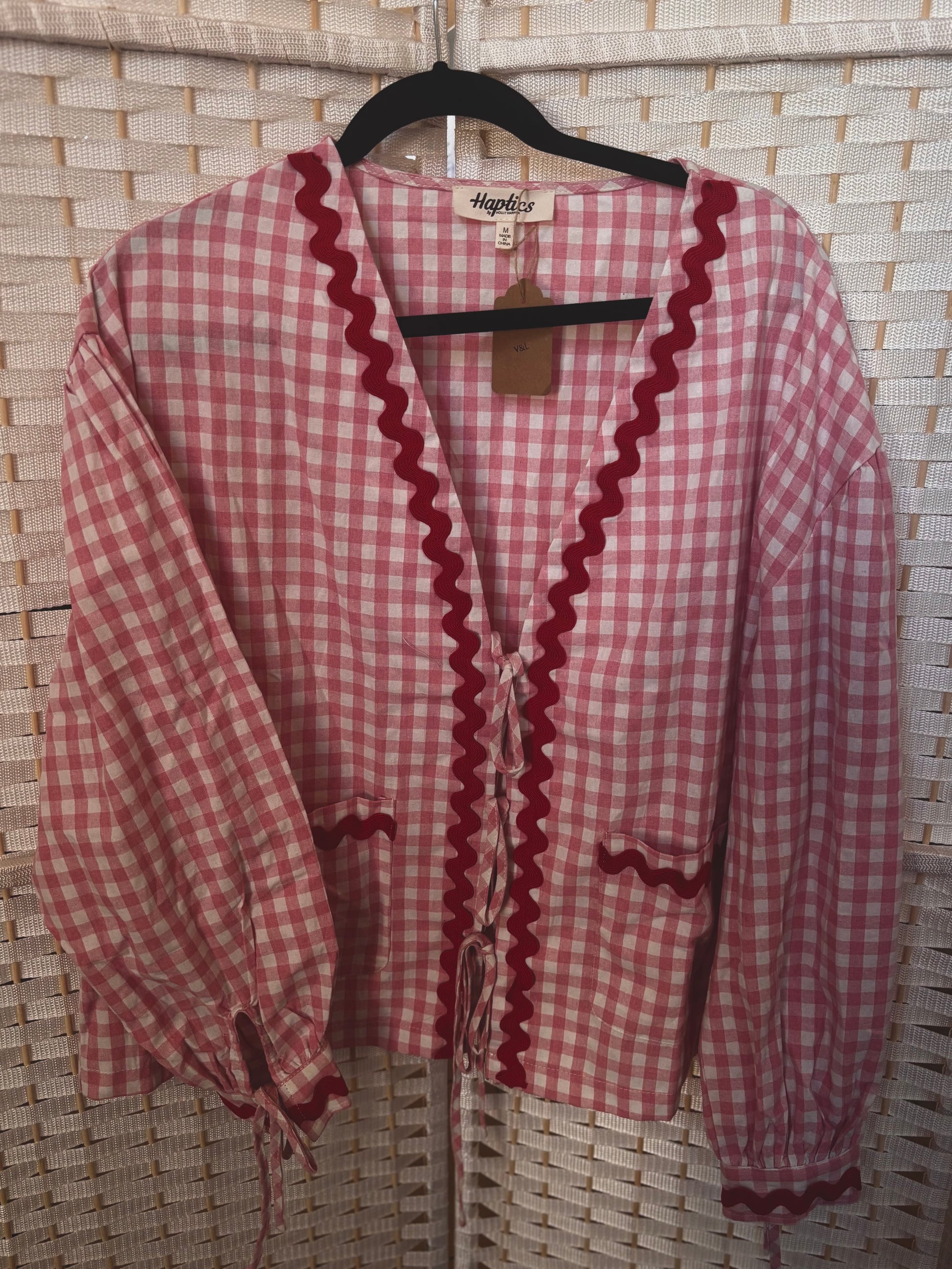 This red gingham beauty features a flirty tie-front detail that lets you cinch it just how you like. Lightweight and breezy, it's perfect for tossing over your favorite sundress or pairing with jeans.