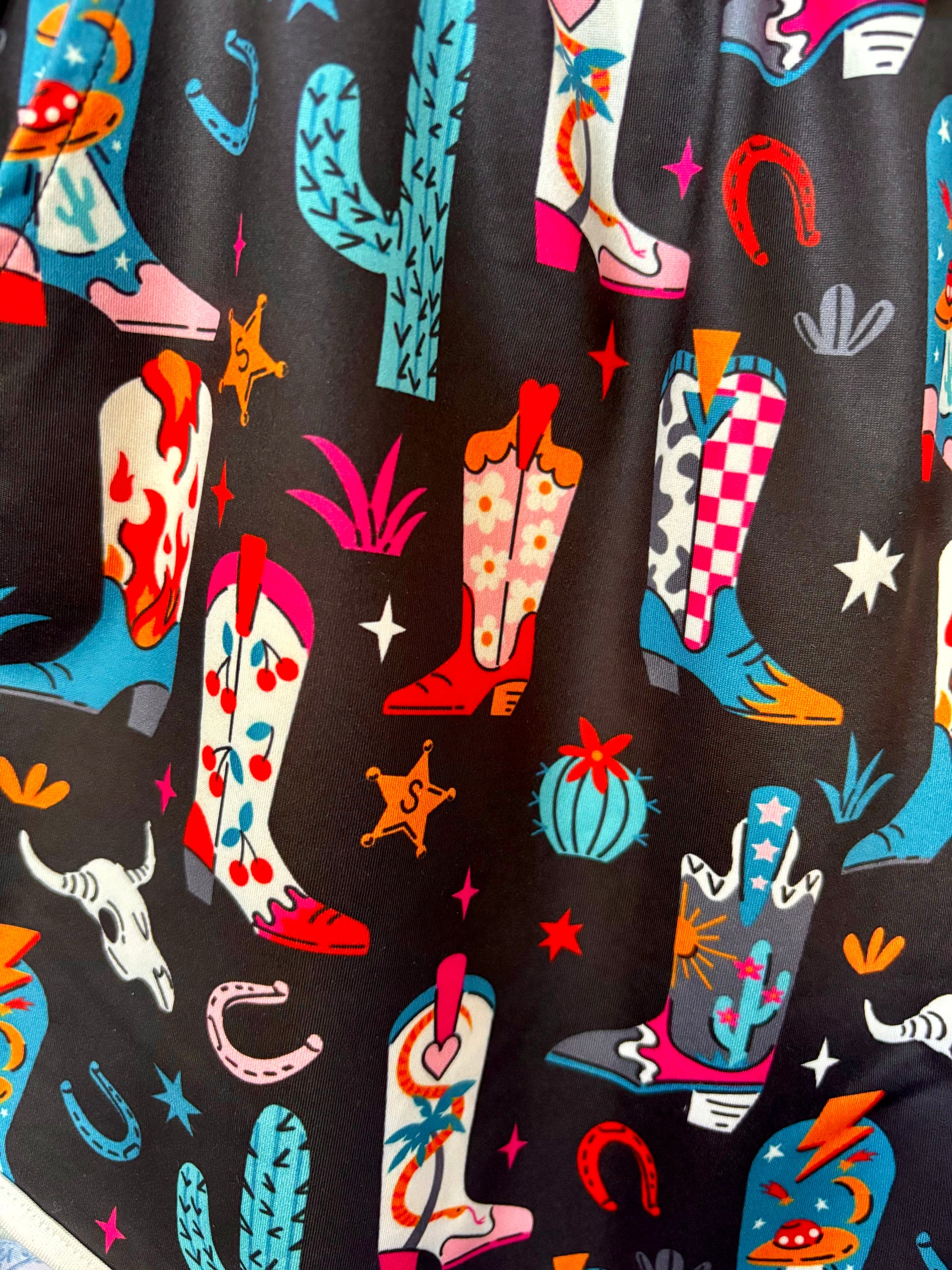 These stylish shorts featuring a distinctive western print are designed to be your comfortable and reliable choice for everyday wear.