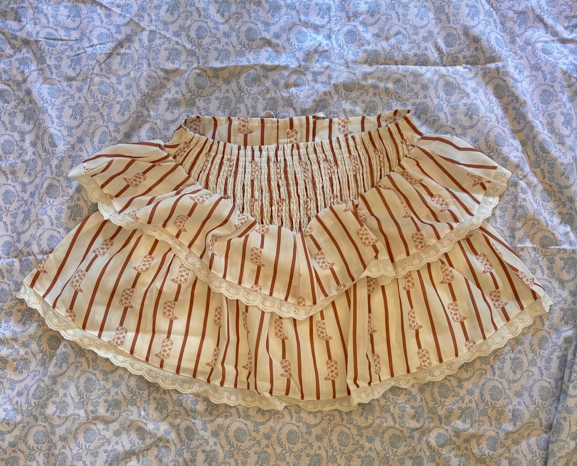 This western-inspired skirt features charming lace trim and a comfy stretchy fit that's as adorable as it is fun.