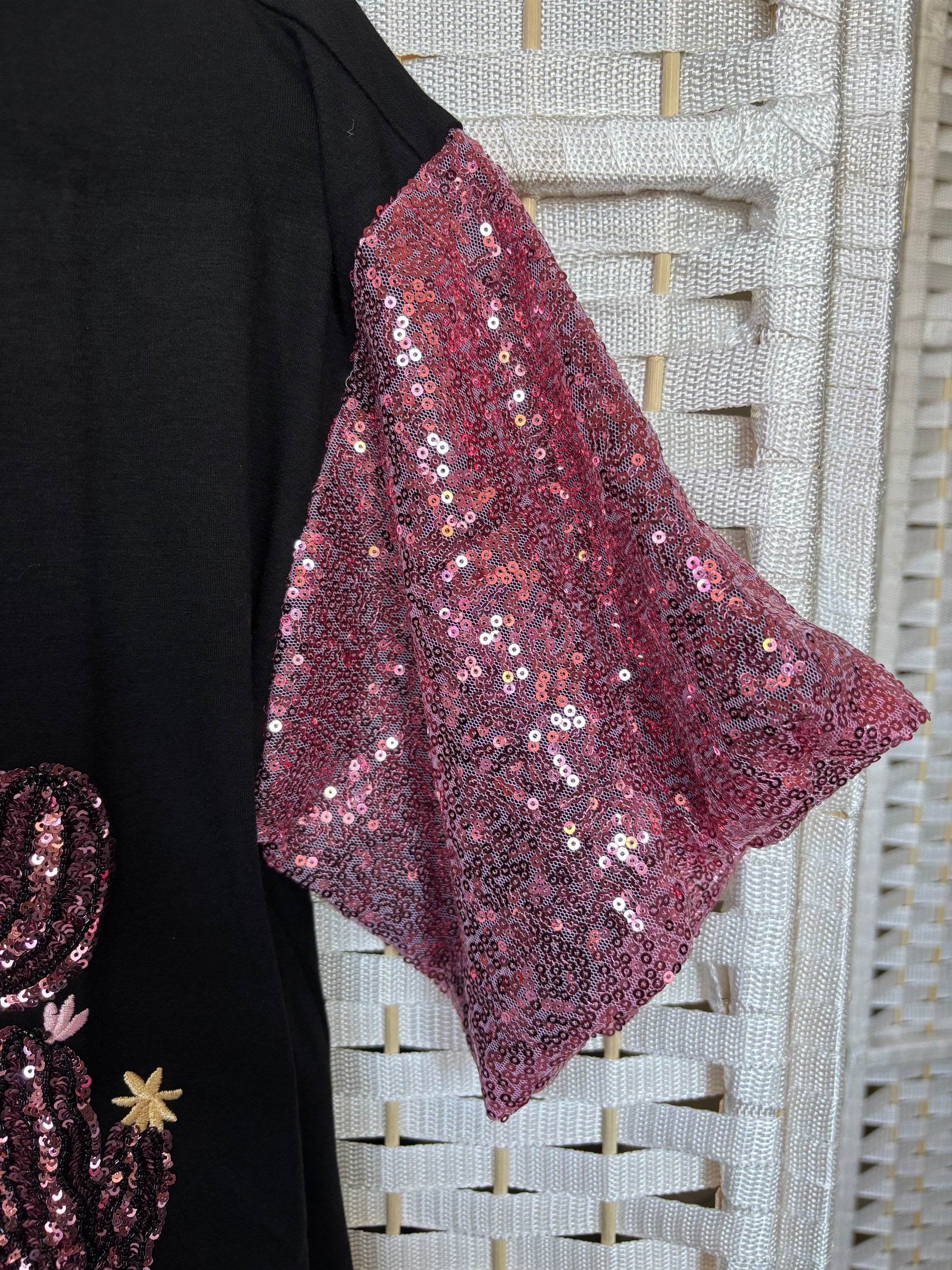 Get ready to shine at any concert wearing this fun western print t-shirt dress—its glittery design guarantees you’ll catch everyone’s eye in the best way!